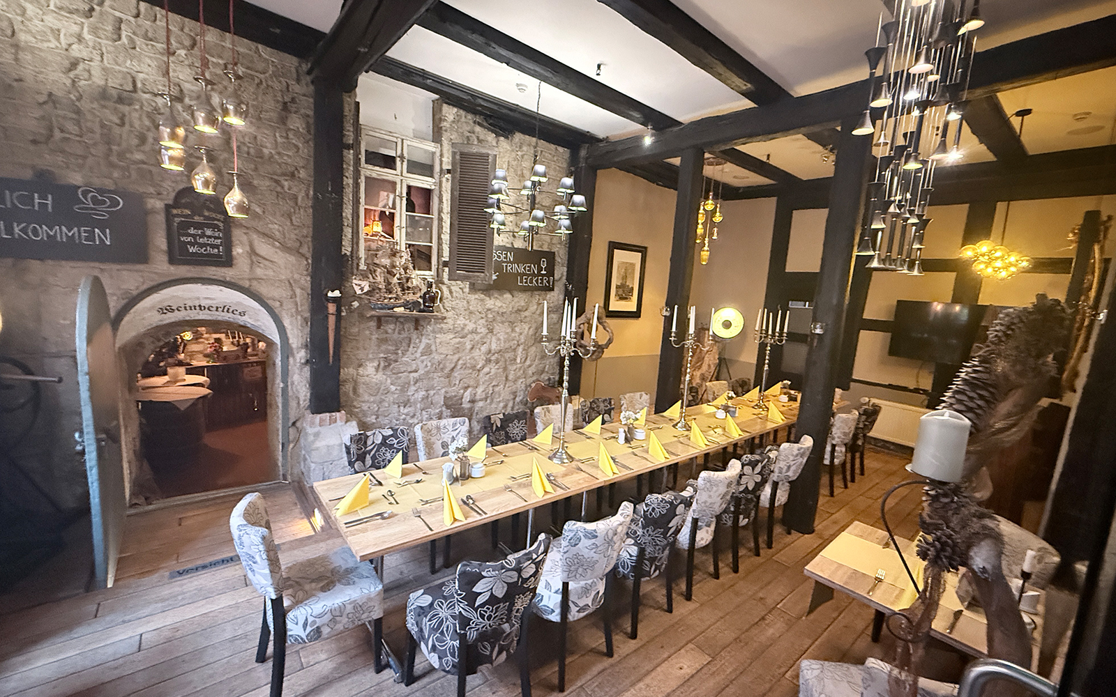 Unserem unteres Restaurant ist ideal für bis zu 25 Personen und in unserem Weinverließ wäre ein eigenes Buffet möglich.